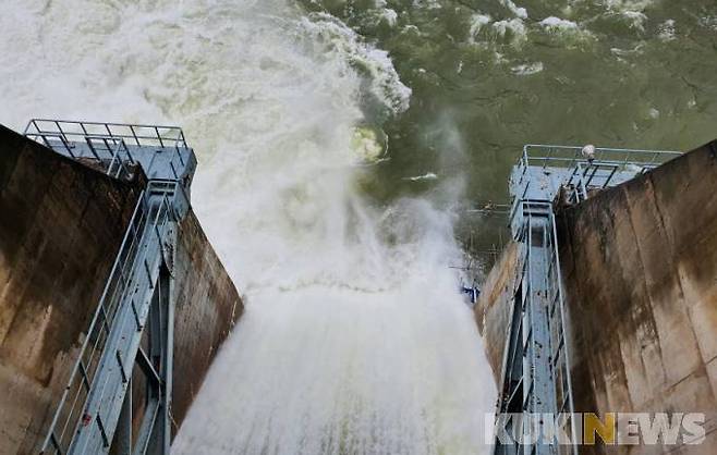 강원일부 지역에 호우주의보가 발효된 30일 오전 춘천댐이 초당 1350t의 물을 방류하고 있다.