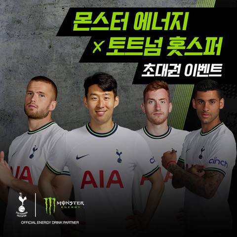 잉글랜드 프리미어리그(EPL) 득점왕 손흥민의 소속팀 토트넘은 이번 프리시즌 동안 한국에서 두 번의 경기를 앞둬 국내 축구팬들의 기대감을 고조시키고 있다. 몬스터 에너지는 국내 축구팬들에게 토트넘 경기 초대권과 토트넘 선수들이 참가하는 특별한 팬미팅 초대권이 포함된 2개의 온라인 프로모션을 실시한다. 몬스터 에너지에서 주최하는 이번 특별 팬미팅은 토트넘 선수 4명과 함께 질의응답, 기념사진 촬영 등으로 구성되며 7월 15일 개최된다.