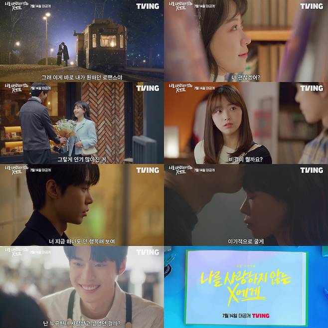 '나를 사랑하지 않는 X에게'는 오는 7월 14일 첫 공개를 시작으로 매주 목요일 오후 4시 공개된다. 7월 14일에는 1~3화, 7월 21일에는 4~6화, 7월 28일에는 7~10화를 선보일 예정이다. (사진=티빙 제공)