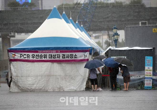 [이데일리 김태형 기자] 30일 오전 서울역광장 코로나19 임시선별검사소에서 시민들이 검사를 받기 위해 대기하고 있다.