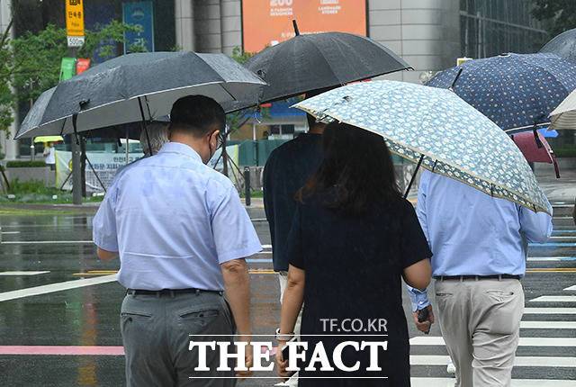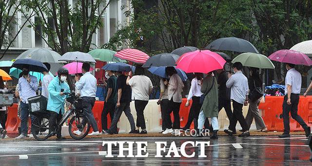[더팩트ㅣ이동률 기자] 서울 전역에 호우경보가 발효된 30일 오전 서울 종로구 광화문역 일대의 시민들이 우산을 쓰고 발걸음을 재촉하고 있다.
