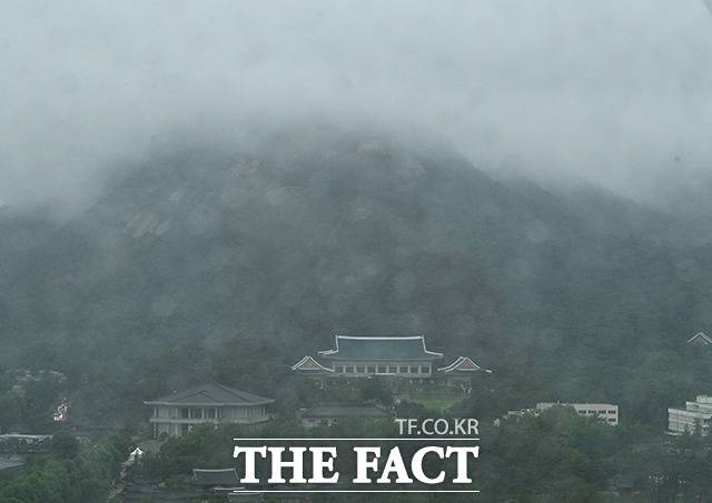 서울 전역에 호우경보가 발효된 30일 오전 서울 종로구 북악산에 비구름이 잔뜩 껴있다.