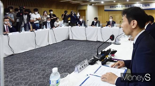 이복현 금감원장이 30일 서울 종로구 도렴동 생명보험교육문화센터에서 열린 금융감독원-보험사 CEO 간담회에 참석, 발언하고 있다.