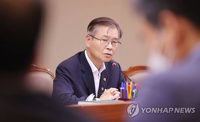 (서울=연합뉴스) 서대연 수습기자 = 이정식 고용노동부 장관이 30일 서울지방고용노동청에서 열린 노동동향 점검 주요 기관장 회의에 참석해 발언하고 있다. 2022.6.30