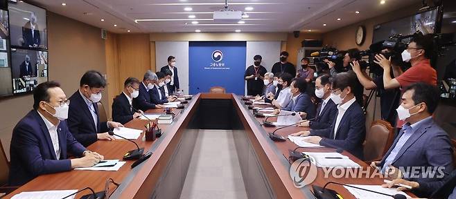 (서울=연합뉴스) 서대연 수습기자 = 30일 서울 중구 서울지방고용노동청에서 노동동향 점검 주요 기관장 회의가 열리고 있다. 2022.6.30