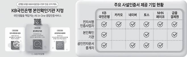 국민은행은 전자서명인증사업자, 공인전자문서중계자, 본인확인기관 자격을 발판으로 올해 하반기부터 본격적으로 KB모바일인증서 범용성 확대에 속도를 낼 방침이다.