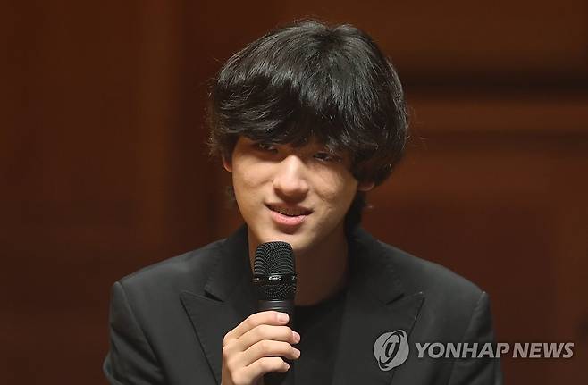 (서울=연합뉴스) 신준희 기자 = 18살의 나이로 미국 반 클라이번 콩쿠르에서 최연소 우승 기록을 세운 피아니스트 임윤찬이 30일 한예종 서초캠퍼스에서 열린 기자간담회에서 소감을 말하고 있다. 2022.6.30