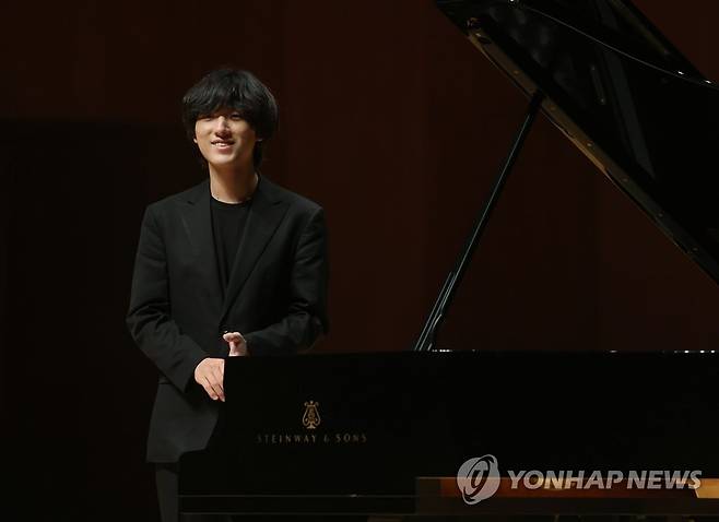 (서울=연합뉴스) 신준희 기자 = 18살의 나이로 미국 반 클라이번 콩쿠르에서 최연소 우승 기록을 세운 피아니스트 임윤찬이 30일 한예종 서초캠퍼스에서 열린 기자간담회에서 카메라를 향해 포즈를 취하고 있다. 2022.6.30