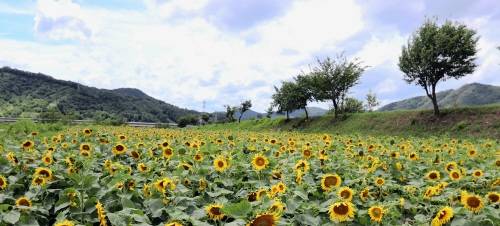 지난주부터 꽃망울을 터뜨리기 시작해 이번 주에 만개한 보청천변에 노란 3만 송이 해바라기 향연은 앞으로 2주 동안 지속될 것으로 보인다.