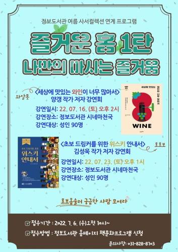 오는 7월 '즐거운 홈' 1탄에서는 초보 홈술러를 위한 와인과 위스키에 관한 저자 강연회를 진행한다.