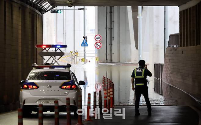 [이데일리 이영훈 기자] 장마전선이 중부지방을 중심으로 강하게 발달하면서 수도권과 영서 남부, 충청 북부에 호우 경보가 발효된 30일 서울 잠수교가 한강 수위 상승으로 차량 출입 통제되고 있다.