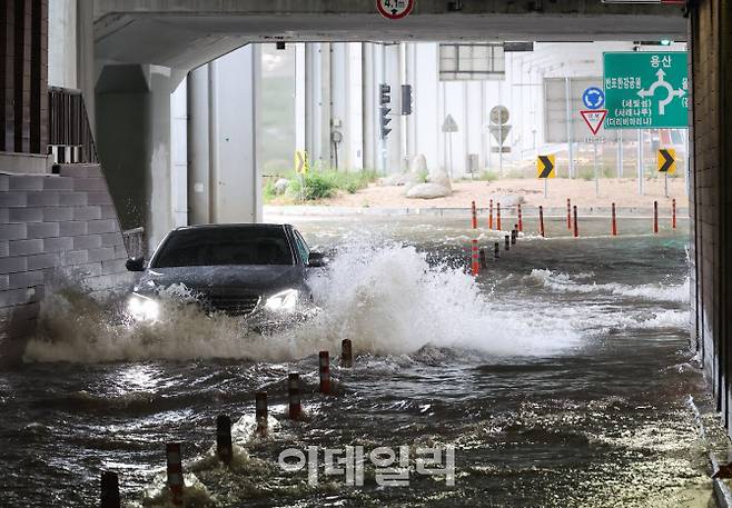 [이데일리 이영훈 기자] 장마전선이 중부지방을 중심으로 강하게 발달하면서 수도권과 영서 남부, 충청 북부에 호우 경보가 발효된 30일 서울 잠수교가 한강 수위 상승으로 차량 출입 통제되고 있다.