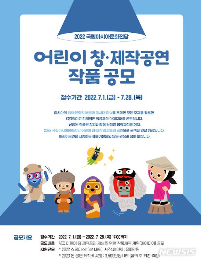 [광주=뉴시스] 류형근 기자 = 국립아시아문화전당(ACC)은 '2022 어린이공연 창·제작 사업'에 참여할 예술 단체(예술가)를 7월 28일까지 모집한다고 30일 밝혔다.