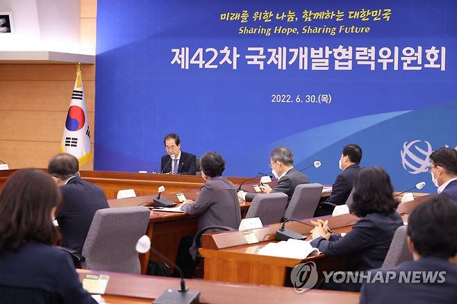 (서울=연합뉴스) 김승두 기자 = 한덕수 국무총리가 30일 정부서울청사에서 열린 제42차 국제개발협력위원회를 주재하고 있다. 2022.6.30