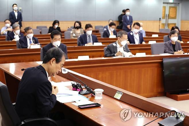 (서울=연합뉴스) 김승두 기자 = 한덕수 국무총리가 30일 정부서울청사에서 열린 제42차 국제개발협력위원회를 주재하고 있다. 2022.6.30