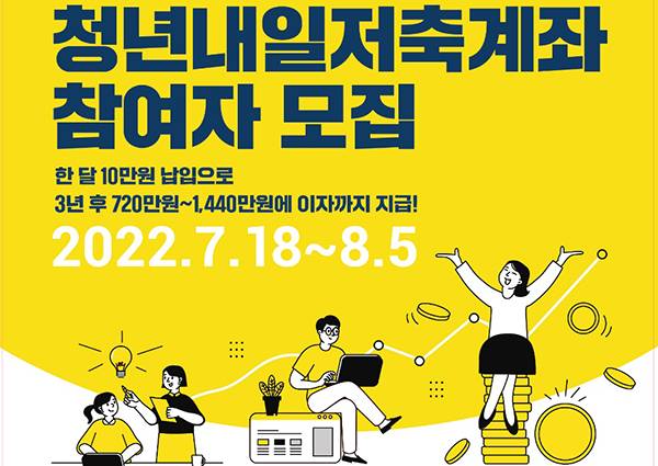 월 10만원 저축하면 3년 뒤 최대 1440만원..청년내일저축계좌 모집