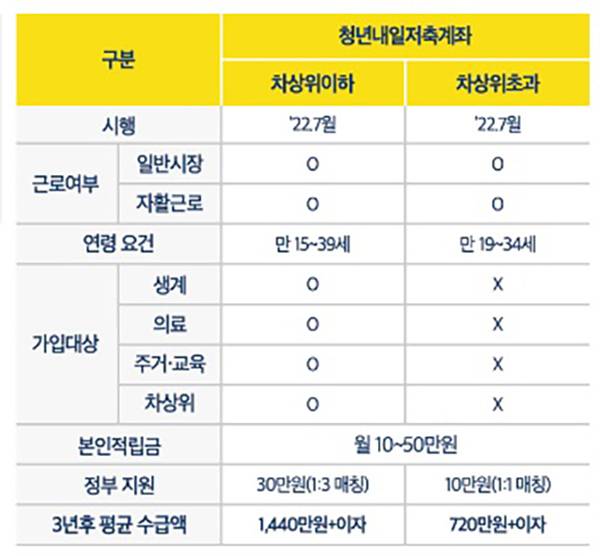 다만 기초생활수급자 및 차상위 청년은 추가적 지원 필요성에 따라 만 15~39세까지 가입 연령을 확대하고, 근로·사업소득 기준을 적용하지 않을 예정이다.