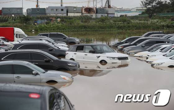 폭우에 침수된 수원시의 한 중고차 매매단지