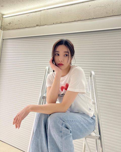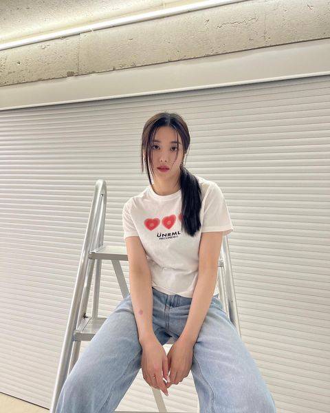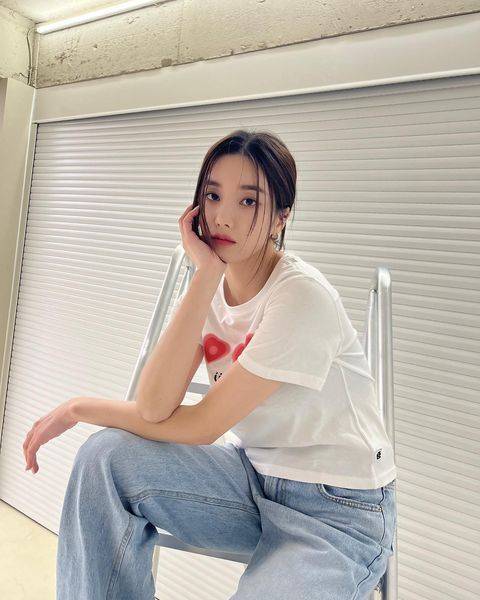 권은비는 30일 인스타그램에 멘트는 따로 적지 않고 하트 이모티콘만 남긴 채 근황 사진을 올렸다. 하트 무늬가 새겨진 흰색 반팔 티셔츠에 청바지를 매치한 편안한 차림의 권은비가 사다리 위에 앉아 다양한 포즈를 선보이고 있다. 무심한 표정을 짓고 있는데, 권은비의 시크한 매력이 도드라진다. 사진을 본 김남주는 "누가 이렇게 섹시하래 어!!!!!!"란 댓글로 권은비의 미모를 칭찬했다. 권은비, 김남주는 뮤지컬 '태양의 노래'를 함께한 사이다.