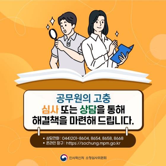 공무원의 고충! 심사 또는 상담을 통해 해결책을 마련해 드립니다.