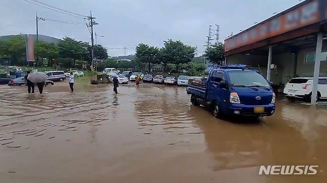 [인천=뉴시스] 이루비 기자 = 30일 오후 인천 서구 안동포사거리 인근 저지대가 침수돼 차량 등이 물에 잠겼다. 기상청에 따르면 전날 오후 3시부터 이날 오전 11시까지 인천지역에 누적 100.4㎜의 폭우가 쏟아졌다. 2022.06.30. ruby@newsis.com