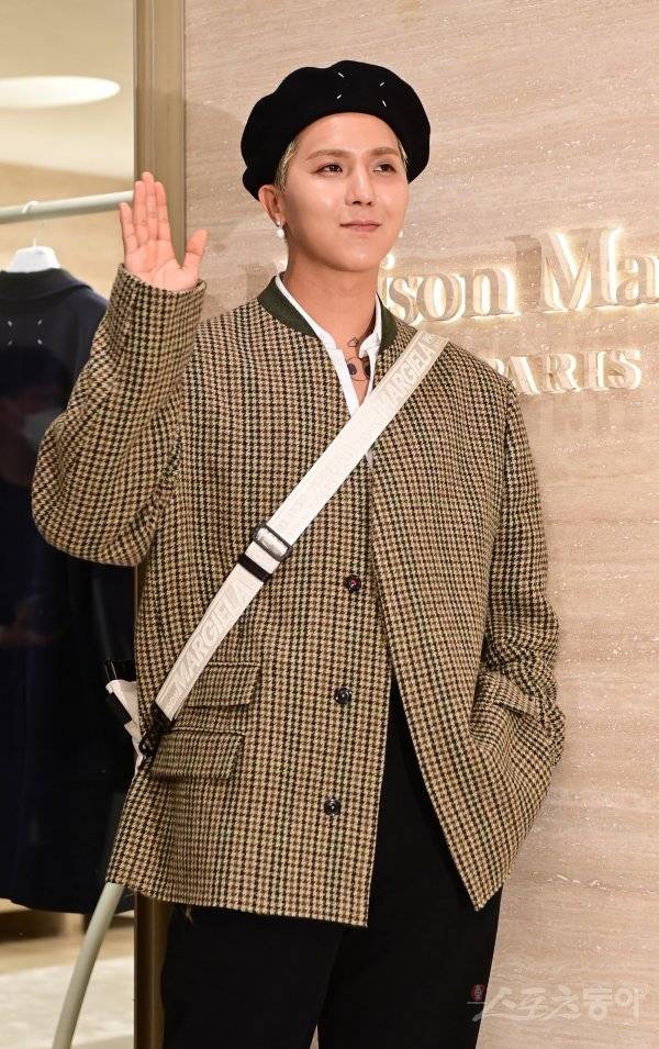 위너 송민호가 30일 서울 중구 소공동 롯데백화점 본점에서 열린 한 여성, 남성 의류 및 액세서리 브랜드의 부티크 재오픈 기념 포토콜에서 포즈를 취하고 있다.