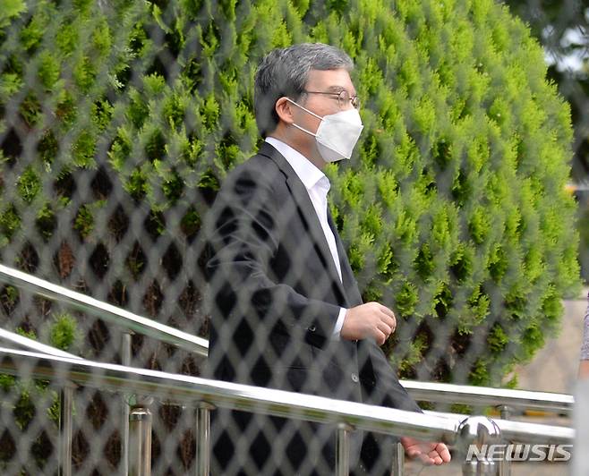 [전주=뉴시스] 김얼 기자 = 이스타항공 자금 배임·횡령으로 전주교도소에 수감됐었던 이상직 전 의원이 30일 전북 전주시 전주교도소에서 보석으로 석방돼 장내를 빠져나오고 있다. 2022.06.30. pmkeul@newsis.com