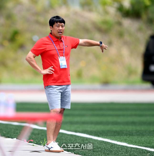 충주예성여고 조원상 감독이 30일 삼척 동해지방해양경찰수련원에서 열린 제30회 여왕기 전국여자축구대회 고등부 8강전 대전 한빛고와 경기에서 작전지시를 하고 있다.