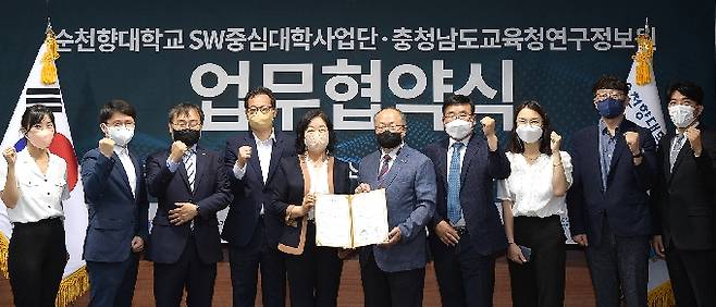 이날 행사에 △순천향대 전창완 연구산학부총장 겸 SW중심대학사업단장 △임강빈 SW융합대학장 △조정기 SW가치확산센터장과 △충청남도교육청연구정보원 김영숙 원장 △김병갑 기획정보부장 등이 참석했다. 이들은 다양한 AI·SW 교육을 통해 디지털 교육격차를 해소하기로 합의했다.