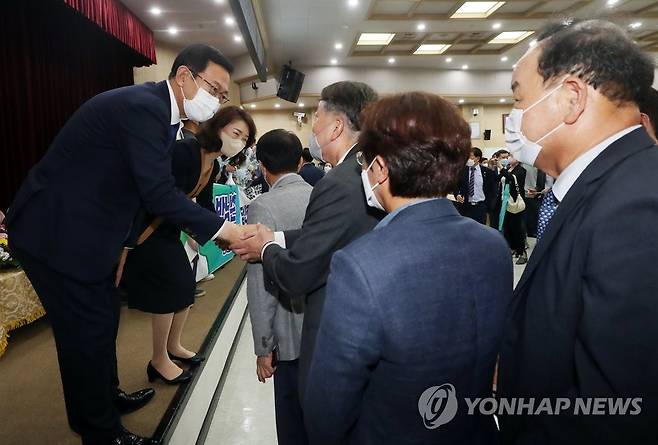 이임식 참석자들과 인사하는 박남춘 인천시장