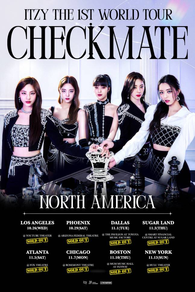 ITZY는 최근 공식 SNS 채널에 ‘ITZY THE 1ST WORLD TOUR <CHECKMATE>’(있지 첫 번째 월드투어 <체크메이트>) 플랜 포스터를 공개하고 그룹의 첫 월드투어 개최 소식을 알려 팬들을 기쁘게 했다. 이들은 10월 26일(이하 현지시간) 로스앤젤레스를 시작으로 29일 피닉스, 11월 1일 달라스, 3일 슈가랜드, 5일 애틀랜타, 7일 시카고, 10일 보스턴, 13일 뉴욕까지 미국 8개 도시에서 공연을 열고 현지 관객들과 만난다.