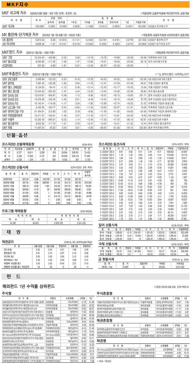 [표] 주요 증시 지표 (6월 30일)