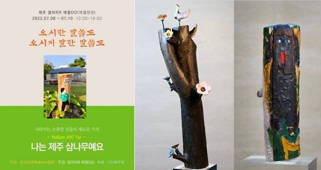 버려지던 삼나무, 예술작품으로 '새 생명' 7월 8일~10일 제주시 갤러리R 애월ㅇㅇ(댕댕) 30여 명 작가, 다양한 장르 연계 50여 점 선봬