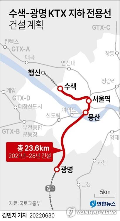 (서울=연합뉴스) 김민지 기자 = 30일 수색과 서울, 광명을 잇는 고속철도 전용선을 지하에 신설하는 사업이 예비타당성조사(예타)를 통과했다.