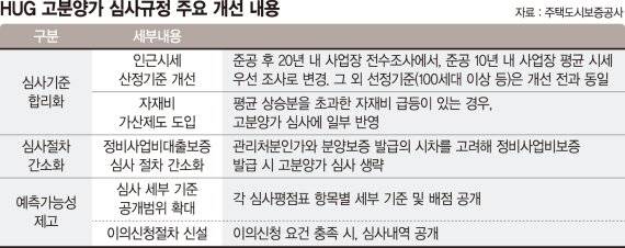 이에 HUG는 2016년 제도 도입 이후 지난해 2차례 제도개선을 통해 고분양가 심사제도를 개선한 바 있다. 그럼에도 정치권과 정비업계에서는 '시장 통제수단 작용'과 '심사기준 불투명'등의 문제가 제기됐다. 분양가를 과도하게 낮게 책정해 정비사업 공급을 막고, 깜깜이 심사로 분양가 산정 과정을 알 수 없다는 것이다.