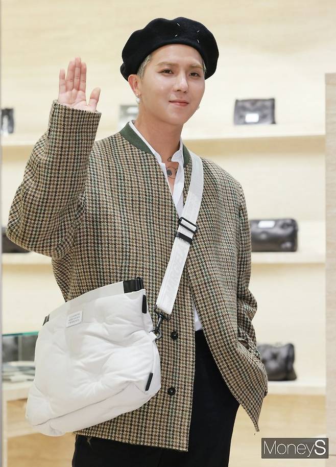 그룹 위너 송민호가 30일 서울 중구 소공동 롯데백화점 본점에서 열린 프랑스 패션 하우스 브랜드 메종 마르지엘라 리뉴얼 오픈 기념행사에 참석, 포즈를 취하고 있다.