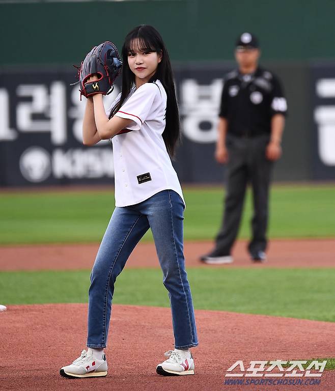 2022 KBO리그 롯데 자이언츠와 두산 베어스의 경기가 30일 부산 사직구장에서 열렸다. 가수 조유리가 시구를 하고 있다. 부산=박재만 기자 pjm@sportschosun.com/2022.06.30/