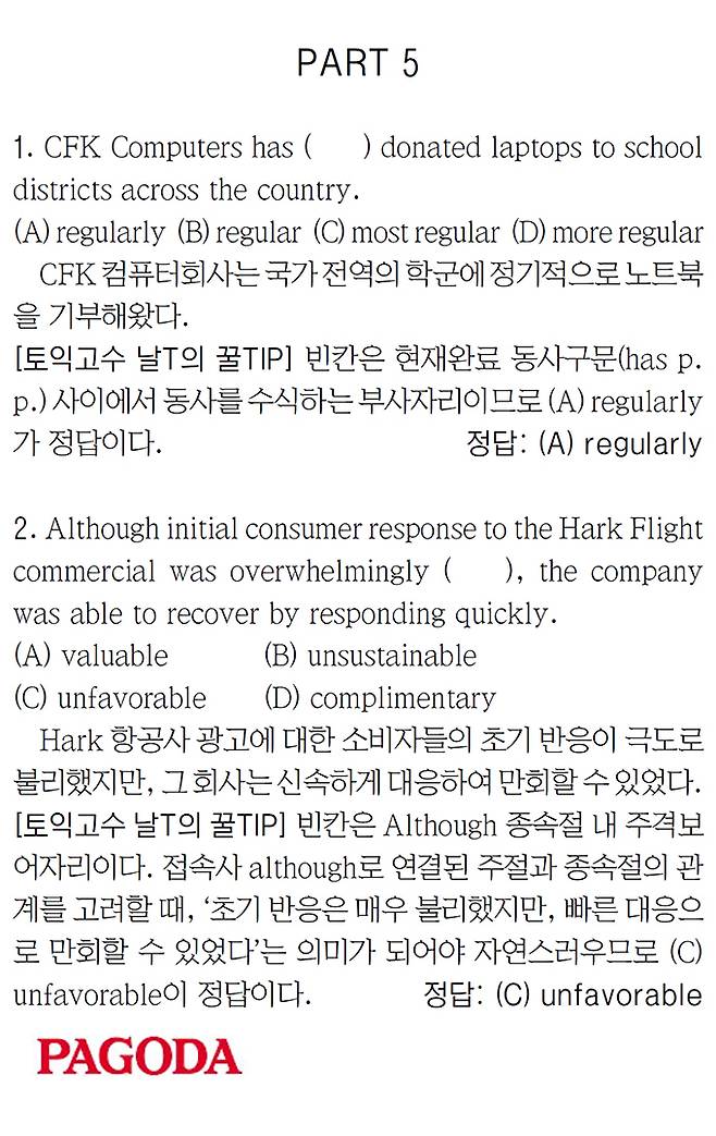 [파고다 강남 1타토익 RC김나래] PART 5