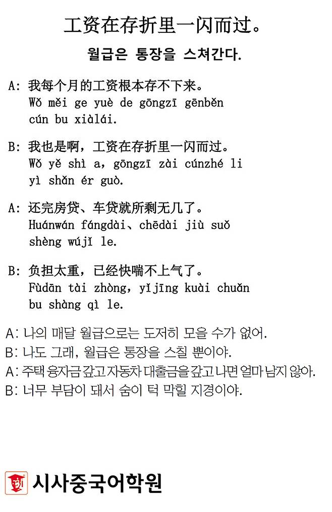 [시사중국어학원의 리얼 중국어 회화] 월급은 통장을 스쳐간다.