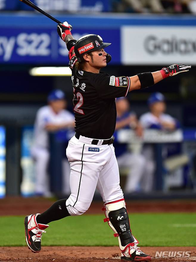 [대구=뉴시스] 이무열 기자 = 30일 오후 대구 수성구 삼성라이온즈파크에서 열린 ‘2022 신한은행 SOL KBO리그’ KT 위즈와 삼성 라이온즈의 경기, 4회초 2사 주자 없는 상황에서 KT 박병호가 솔로 홈런을 때리고 있다. 2022.06.30. lmy@newsis.com
