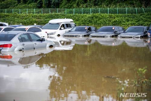 오전 10시께는 수원시 권선구에 있는 중고차 매매단지 일부가 침수돼 100여 대에 달하는 중고차량이 물에 잠긴 것으로 파악됐다.