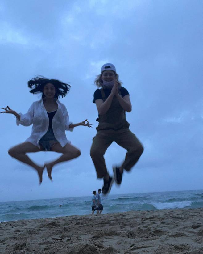 사진 속에는 지효와 정연의 행복한 부산 여행 모습이 담겨있다.