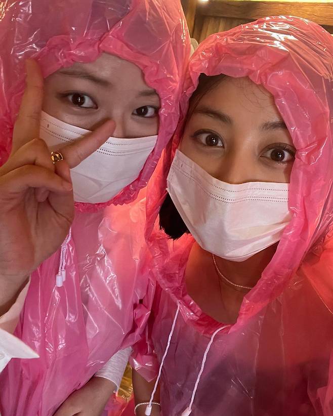 사진 속에는 지효와 정연의 행복한 부산 여행 모습이 담겨있다. 얼굴을 맞댄 채 다정함을 연출하고 있는 지효와 정연. 또렷한 이목구비 등 아름다운 일상 미모를 자랑했다. 핑크색 우비를 나란히 쓰고 있는 모습은 귀여움 가득했다.