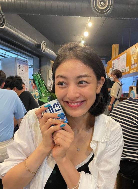 사진 속 두 사람은 수영복을 입고 물놀이를 하는가 하면 북적북적한 술집에서 지역소주를 즐기기도 했다.