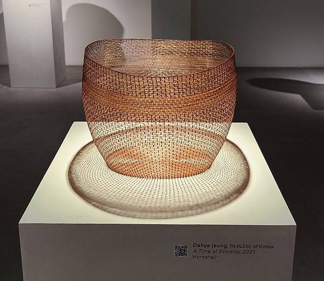 (서울=연합뉴스) 김준억 기자 = 서울공예박물관에 전시된 정다혜 작가의 말총공예 출품작. 2022.6.30