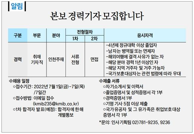 [알림] 국민일보 경력기자 모집합니다