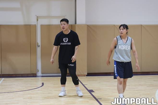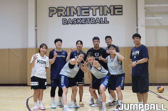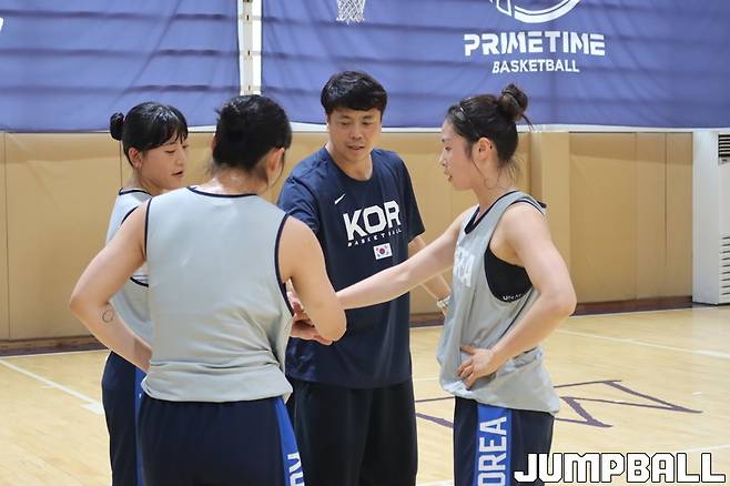 <점프볼>이 취재를 위해 찾아간 30일 오후에는 박찬성, 박병우(이상 은퇴), 곽동기(KCC) 등 전현직 프로농구 선수들이 다수 포함된 프라임타임과 세 차례 연습경기를 가졌고, 3패(8-17, 16-20, 18-21)의 결과를 받아들였다. 남자 팀들과의 맞대결이었기에 결과는 큰 의미가 없었지만, 대표팀은 스피드, 피지컬적으로 훨씬 뛰어난 남자 팀들과의 연습 경기를 통해 나름의 소득을 얻었다.