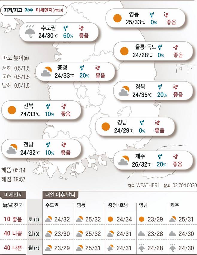 2022년 7월 1일 중부 흐리고 한때 비..남부·제주 구름 많음[오늘의 날씨]