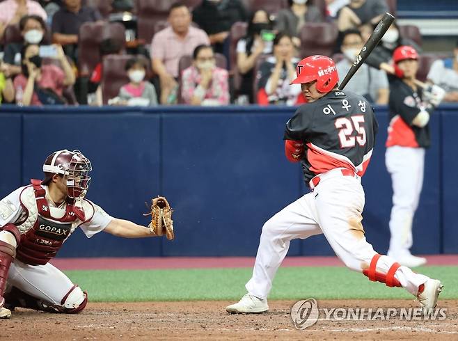 (서울=연합뉴스) 서대연 수습기자 = 30일 서울 고척스카이돔에서 열린 2022 프로야구 KBO리그 KIA 타이거즈와 키움 히어로즈의 경기. 9회초 2사 만루 KIA 이우성이 삼진아웃 당하고 있다. 2022.6.30