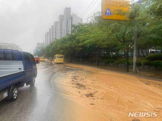 [인천=뉴시스] 이루비 기자 = 호우경보가 발효된 30일 오후 인천 서구 원당동 원당사거리 인근 공사장에서 토사가 흘러내려 도로 일부가 흙으로 뒤덮였다. 행정안전부 중앙재난안전대책본부에 따르면 지난 29일 자정부터 이날 오후 5시까지 인천지역에 누적 212.0㎜의 폭우가 쏟아졌다. 2022.06.30. ruby@newsis.com